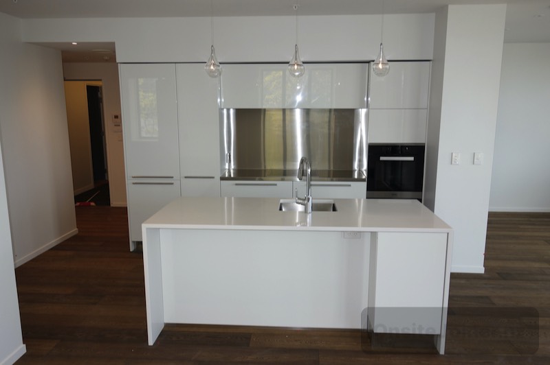 Gloss White P2O Kitchen. MiroStone Tops